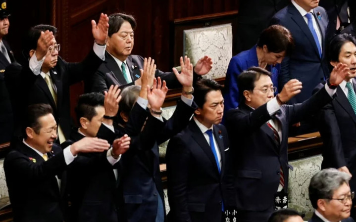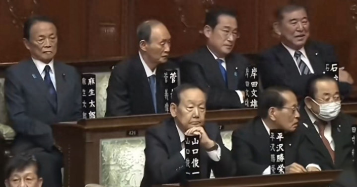 石破茂的反抗更是直击要害。众人高举双手高呼万岁时,他只是静静站立,不举手不发声,用沉默完成硬核抗议。事后他公开发声炮轰,指责现政府不顾通胀、养老等民生难题,只顾政治博弈,完全漠视民众诉求。